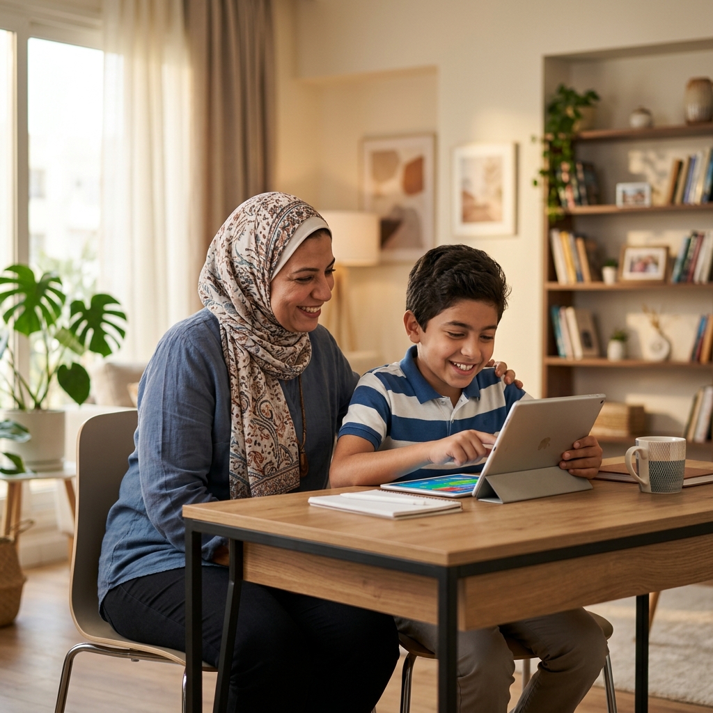 “كنت شايلة هم الامتحانات جداً بس مراجعة الأضواء ريحتني. ابني بقى يحب المذاكرة ومتابع الحصص اللايف بكل حماس.”
